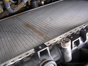 オイル交換他。 オイル交換は近所の修理工場でフィルター(1575円)持ち込みでやって貰いました。4.5L量り売りで3833円、廃油代とか含めて考えるとリーズナブルかと。 4.24のこの項で書いたラジエター上部のパッキン部漏れの写真がこれです。↓